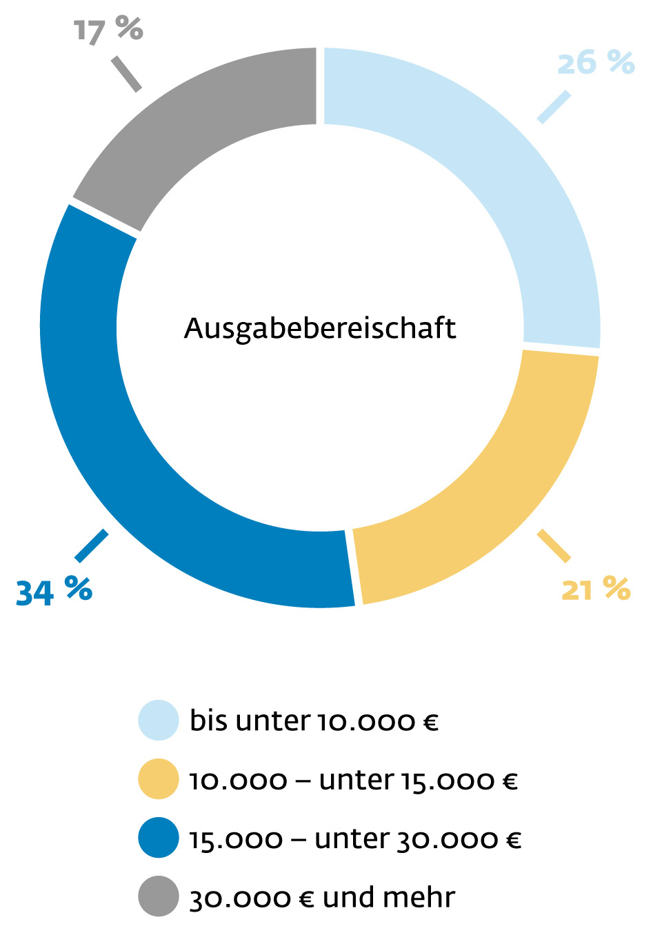Ab einem Kaufpreis von 12.500 € ist die Ausgabebereitschaft größer als im Schnitt der Bevölkerung, mit weit überdurchschnittlicher Ausgabebereitschaft bei hochwertigen PKW (Index 241 bei Kaufpreisen ab 40.000).