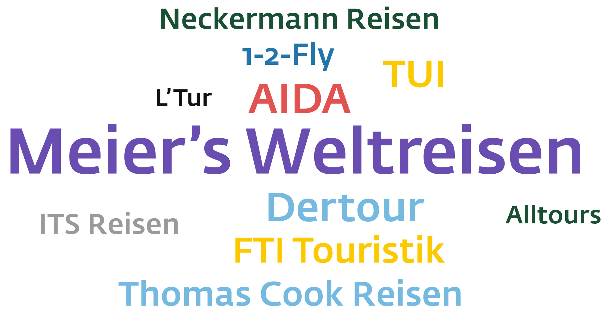 Die Reisen werden ueberwiegend ueber einen Reiseveranstalter gebucht. In den letzten 12 Monaten vor der Befragung wurden diese Veranstalter am häufigsten ausgewählt: