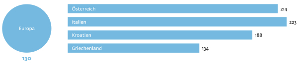 Hinzu kommen dann noch mehrere Kurzreisen von unterschiedlicher Dauer im Jahr. Die Balkenlänge gibt den Indexwert zum Schnitt der Bevölkerung an (100%):
